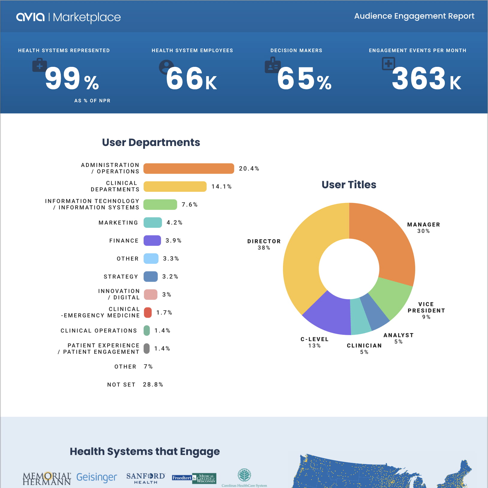Our audience represents a broad mix of stakeholders, from executives to analysts, IT teams to clinical leaders. Critically, 60%+ of our audience are in decision-making positions.